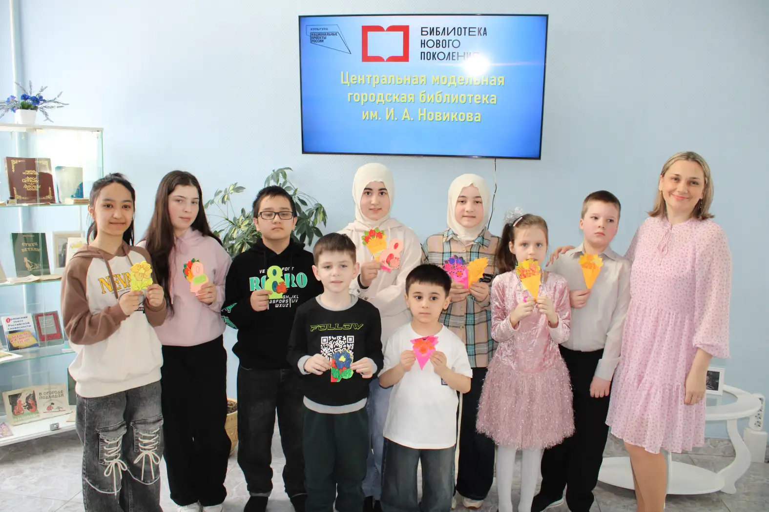 Сотрудники библиотеки подготовили для посетителей тематическую книжную выставку, а также организовали творческую мастерскую, где дети вместе с библиотекарями создавали поздравительные открытки для своих мам.