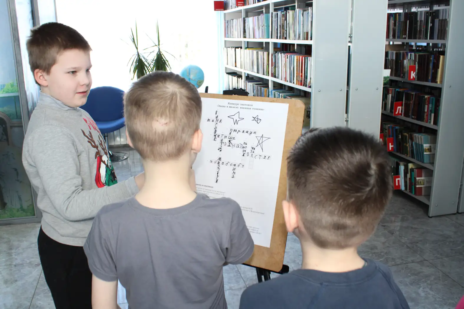 Читатели и ребята из клубных объединений по интересам, разделившись на команды, соревновались в знаниях военной техники. Главным испытанием для участников стал интересный кроссворд, посвящённый военной тематике. Вопросы были самые разнообразные: от названий легендарных танков и самолётов до имён выдающихся полководцев и ключевых сражений.