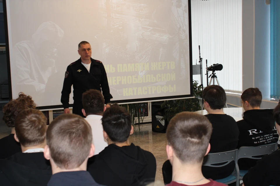 В мероприятии приняли участие студенты первого курса техникума агробизнеса и сервиса. Для них была организована встреча с заместителем начальника МО МВД России «Мценский» Андросовым Андреем Николаевичем и председателем общественной организации союза «Чернобыль» города Мценска Сиротиным Александром Петровичем.