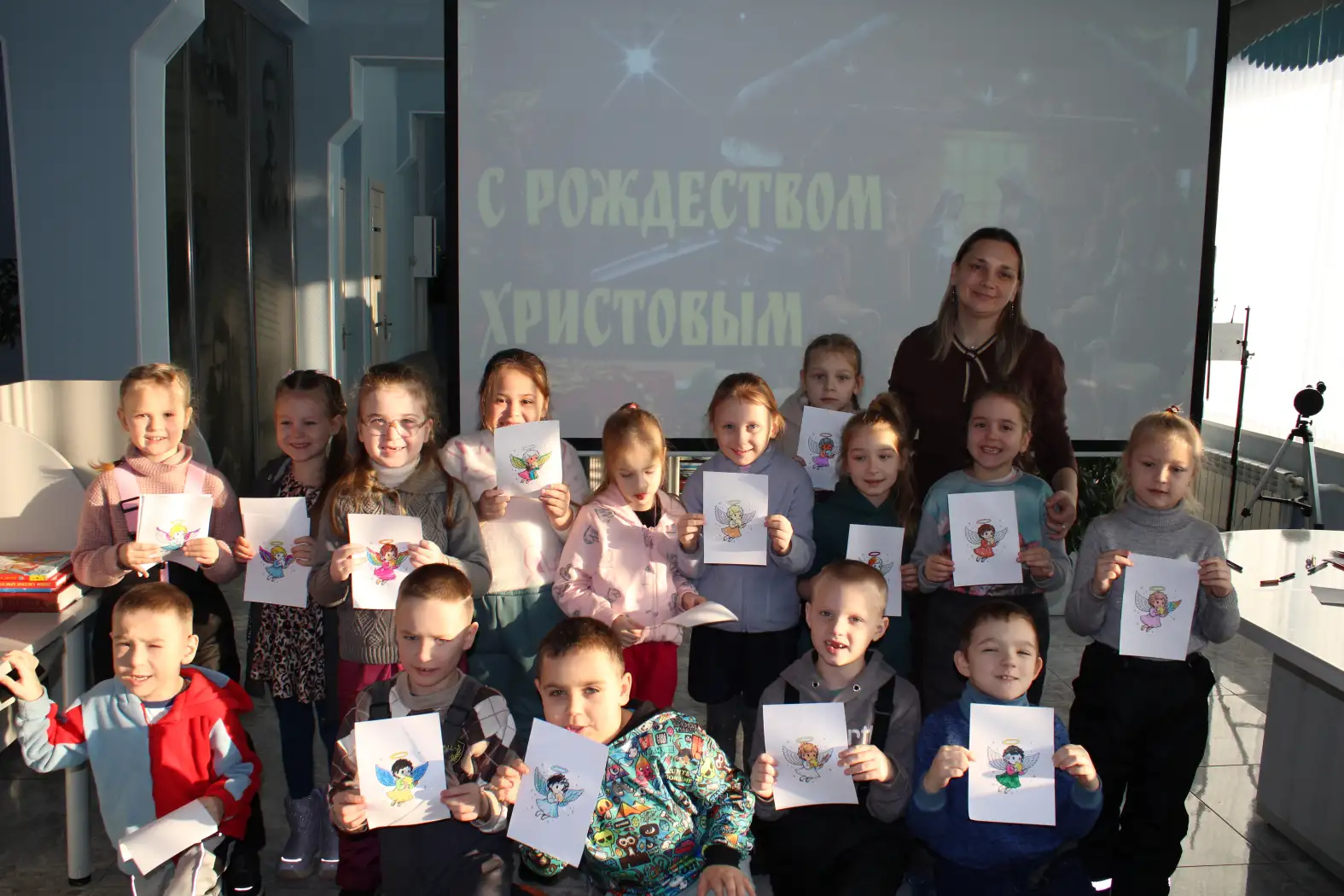 Ребята с удовольствием погрузились в атмосферу праздника: узнали много интересного и познавательного о Рождестве, посмотрели трогательную сказку о рождении Иисуса Христа, прочитали стихи, посвященные Рождеству и Новому году. А еще были веселые загадки, любимые песни из мультфильмов и творческое задание – раскрашивание символа Рождества