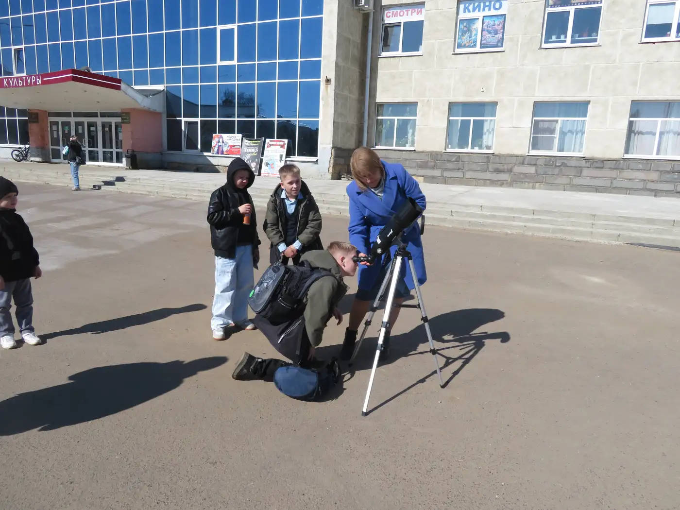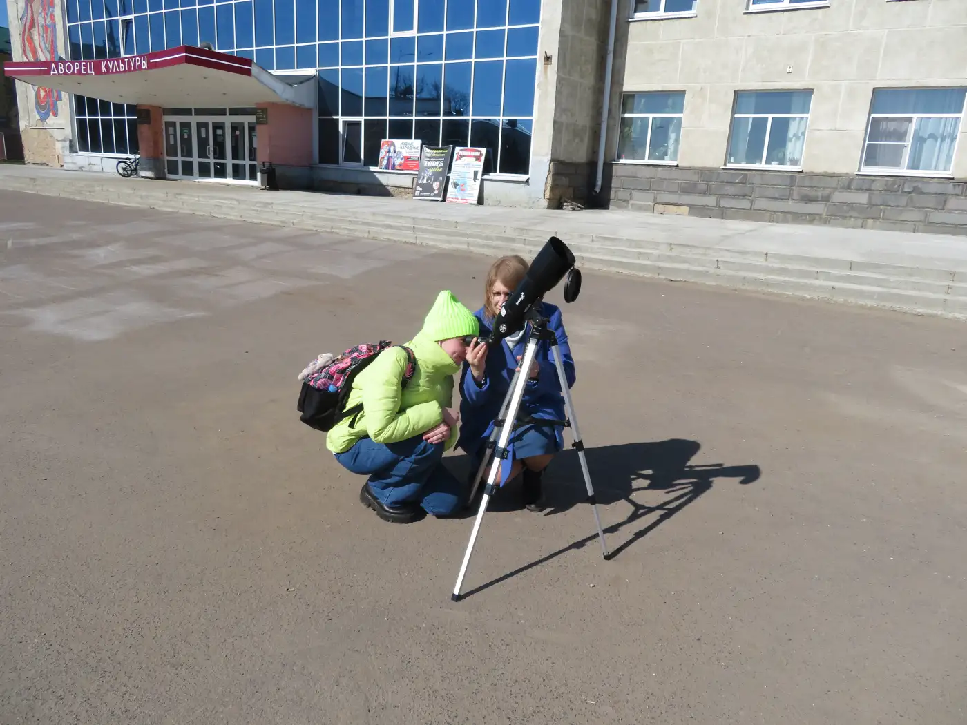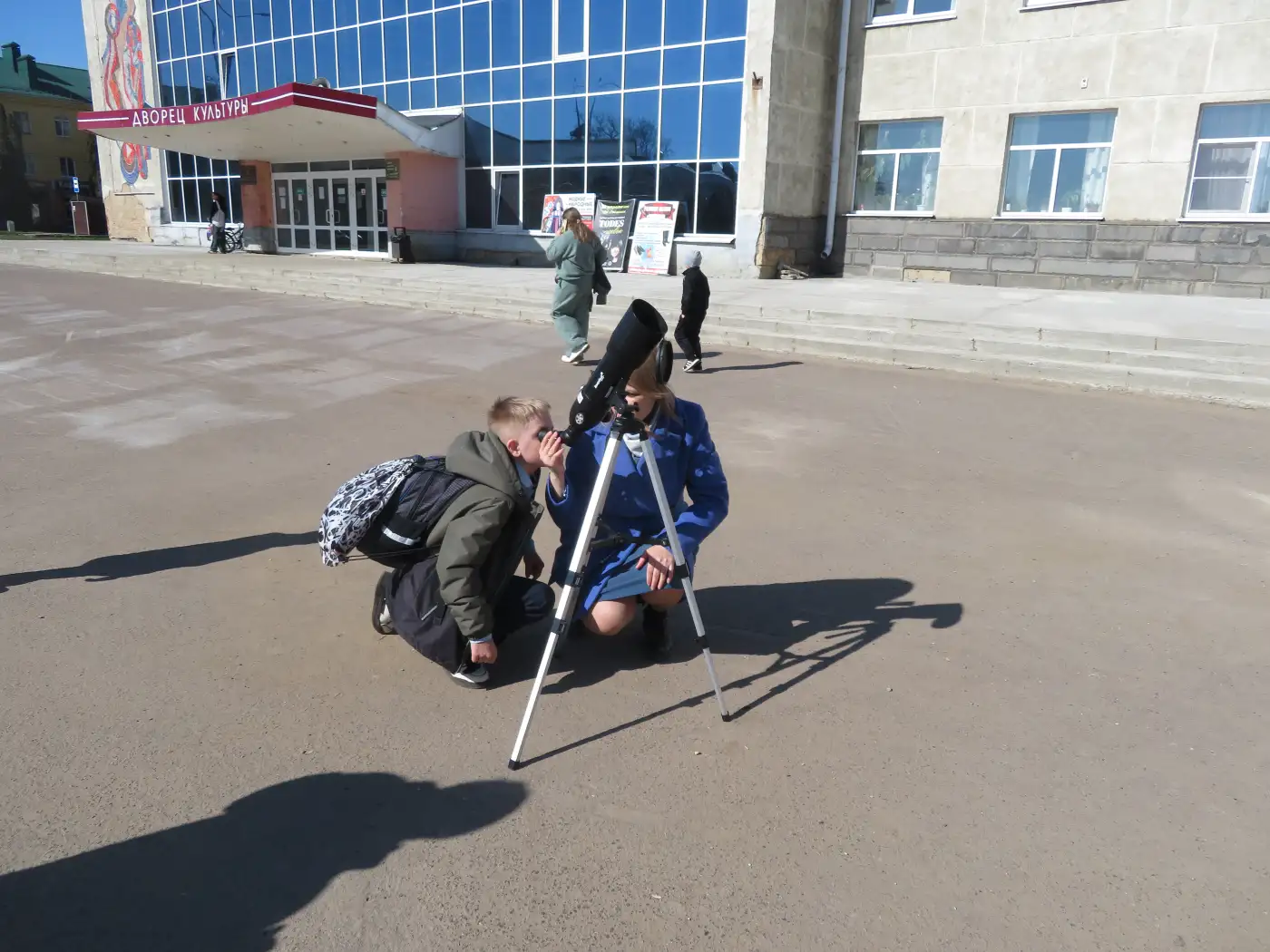 Юные жители города Мценска с интересом рассматривали яркий полумесяц и наземные объекты в объективе телескопа.