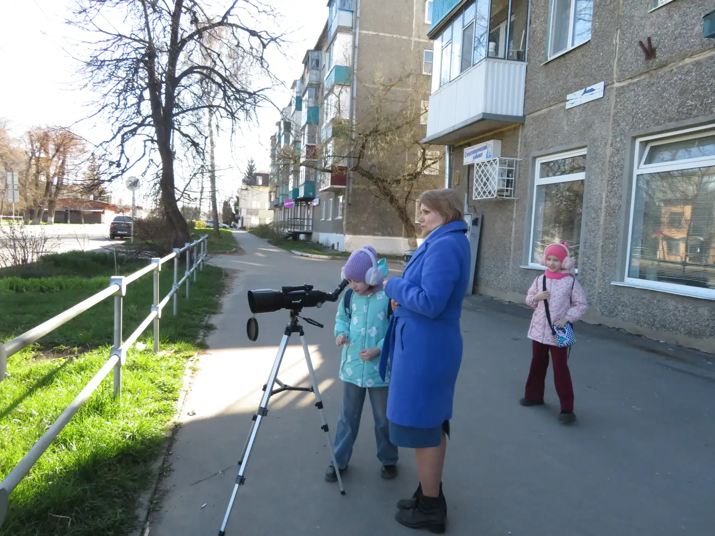 В ясный день 22 апреля, когда на улице была видна молодая Луна, сотрудники библиотеки провели акцию, участники которой могли понаблюдать Луну в телескоп.