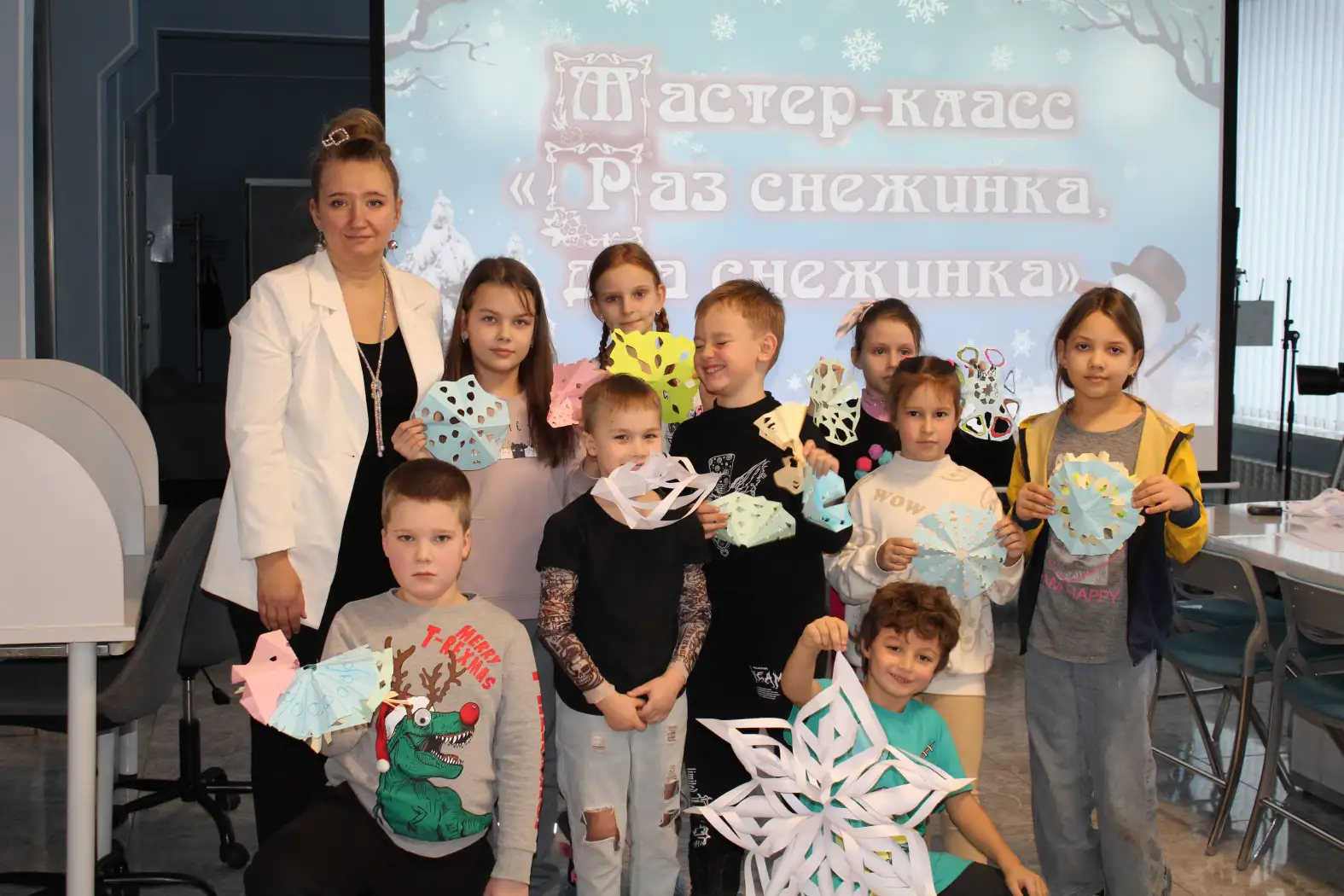 Для юных гостей был организован увлекательный мастер-класс «Раз снежинка, два снежинка». Участники не только узнали множество удивительных и познавательных фактов о хрупких созданиях природы – снежинках, но и окунулись в мир поэзии, читая любимые стихотворения о зиме.