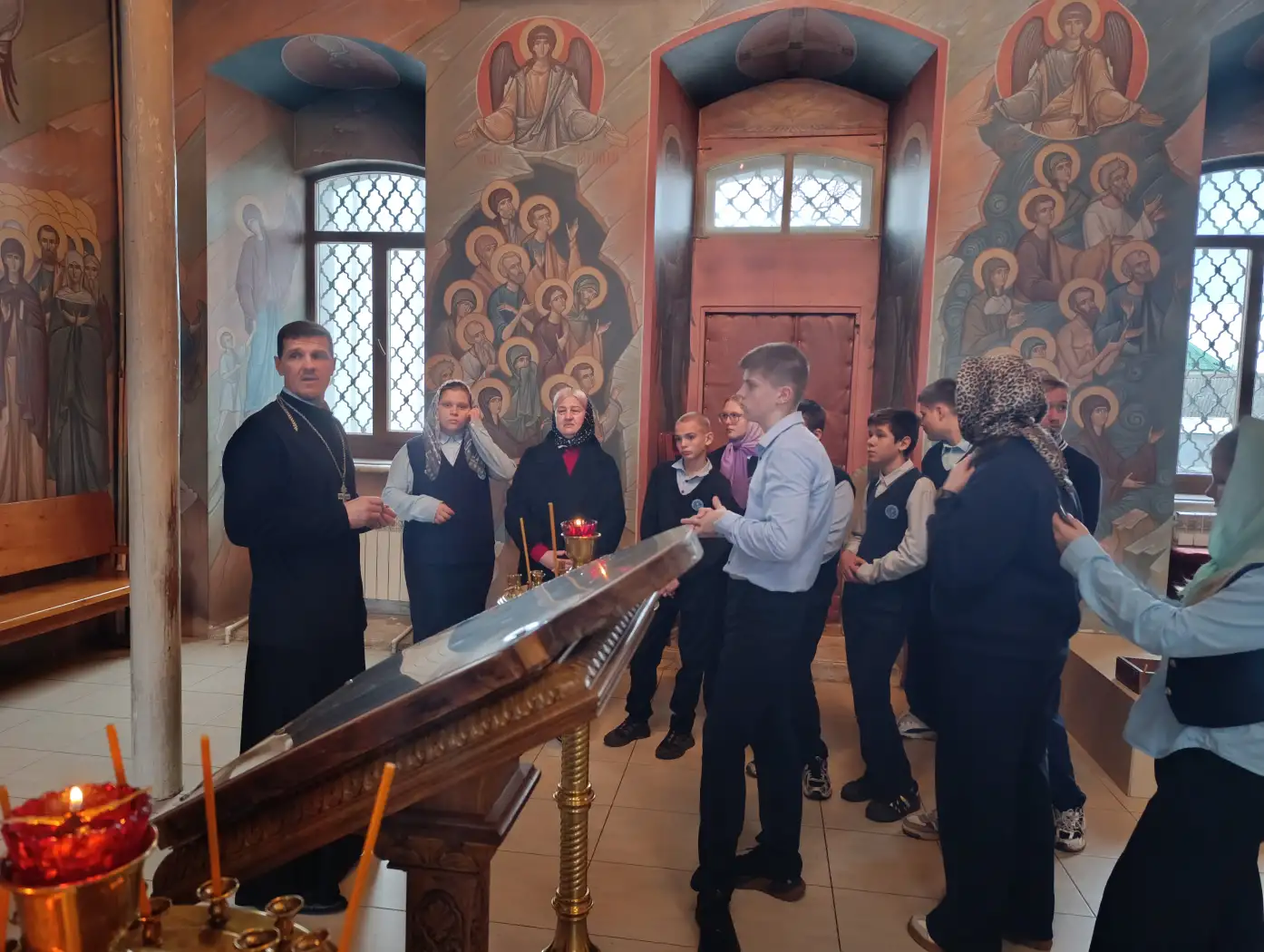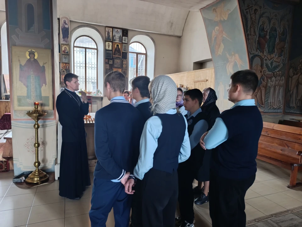 Отец Виталий рассказал об истории храма и старинных иконах. Его рассказ был не только информативным, но и доступным для подростков, что позволило им лучше понять важность духовных традиций. Священник объяснил основы православного вероучения, акцентируя внимание на том, как эти знания могут помочь в жизни и формировании личного мировосприятия.