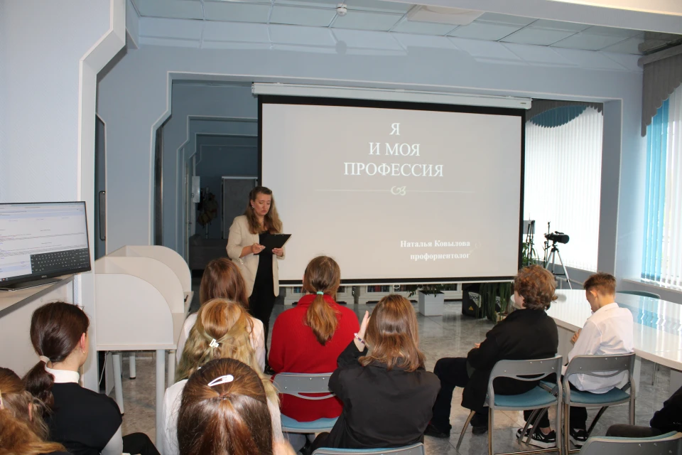 В ходе встречи профориентолог Наталия Владимировна Ковылова рассказала ребятам о современных трендах на рынке труда, востребованных профессиях будущего, а также о том, как правильно оценить свои способности, интересы и склонности при выборе специальности. В рамках мероприятия школьники приняли участие в интерактивном тестировании и профориентационной игре.