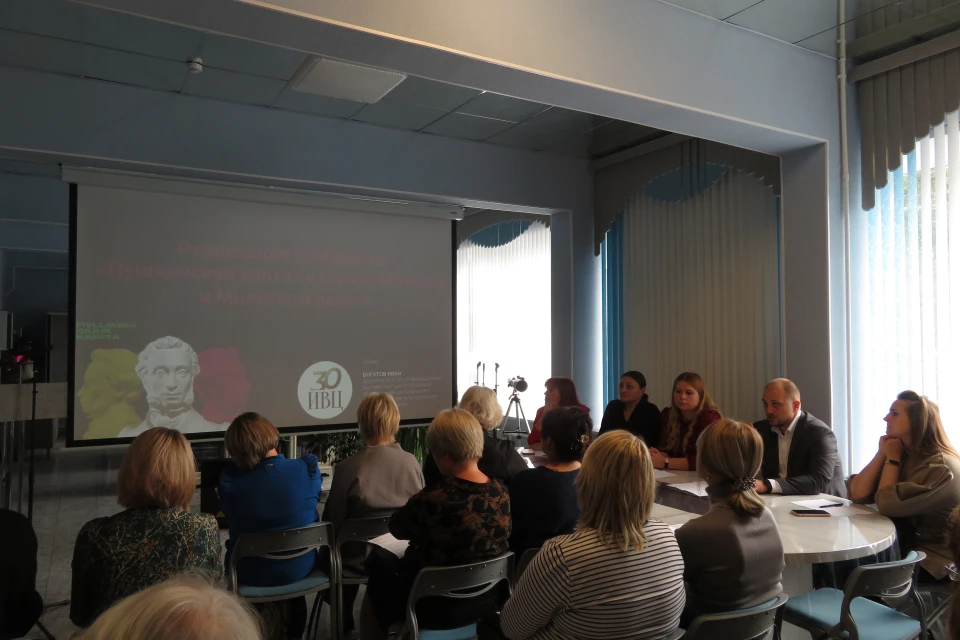 С докладом выступил член экспертного совета по программе «Пушкинская карта» Иван Геннадьевич Богатов. В своём выступлении он осветил последние требования к формам мероприятий, ознакомил аудиторию с нововведениями в программе и представил статистические данные по уже проведённым мероприятиям в городе Мценске и Мценском районе.