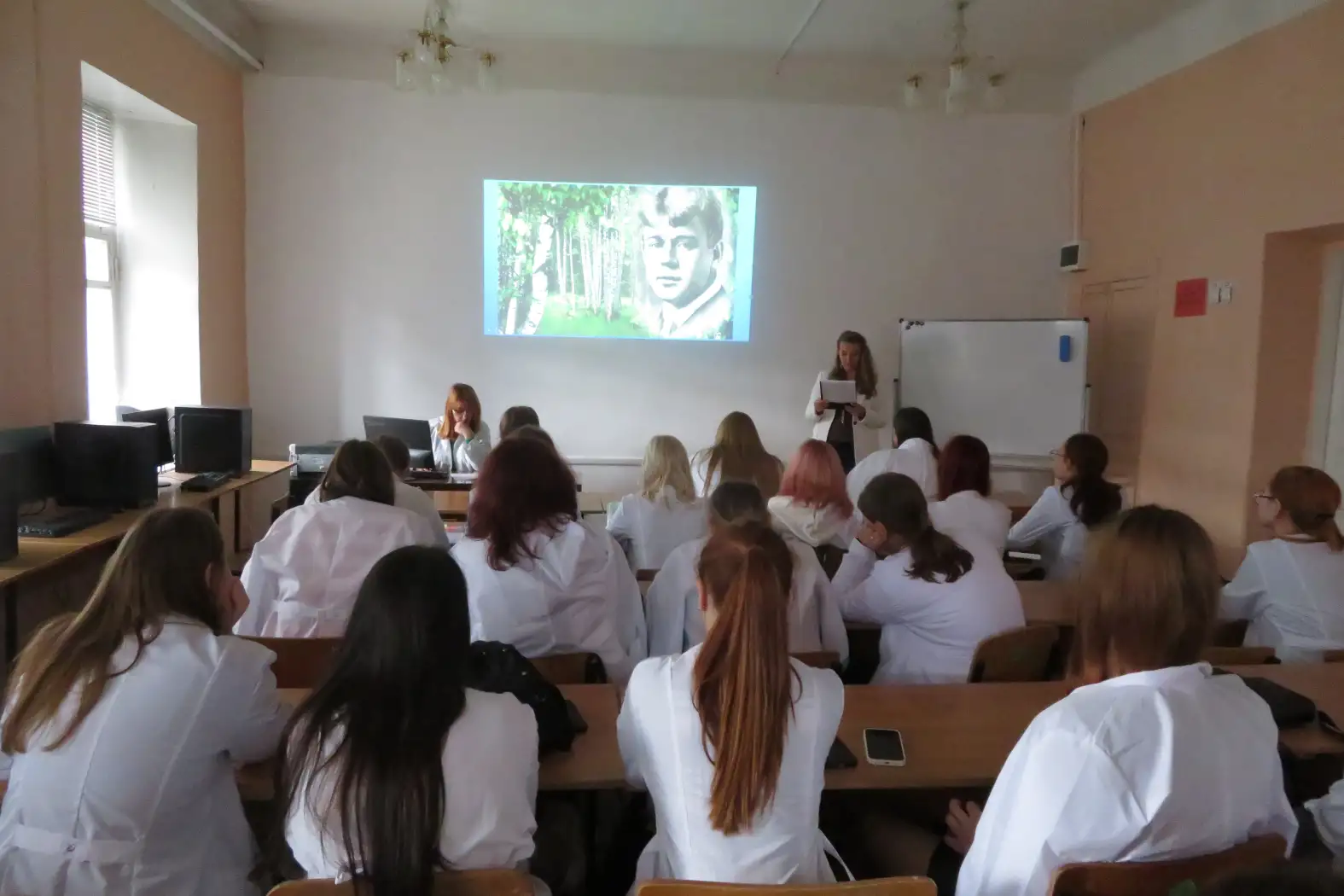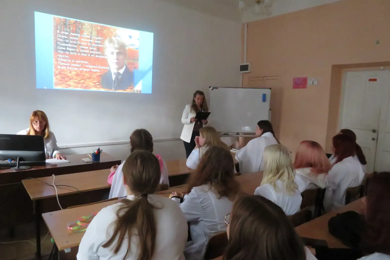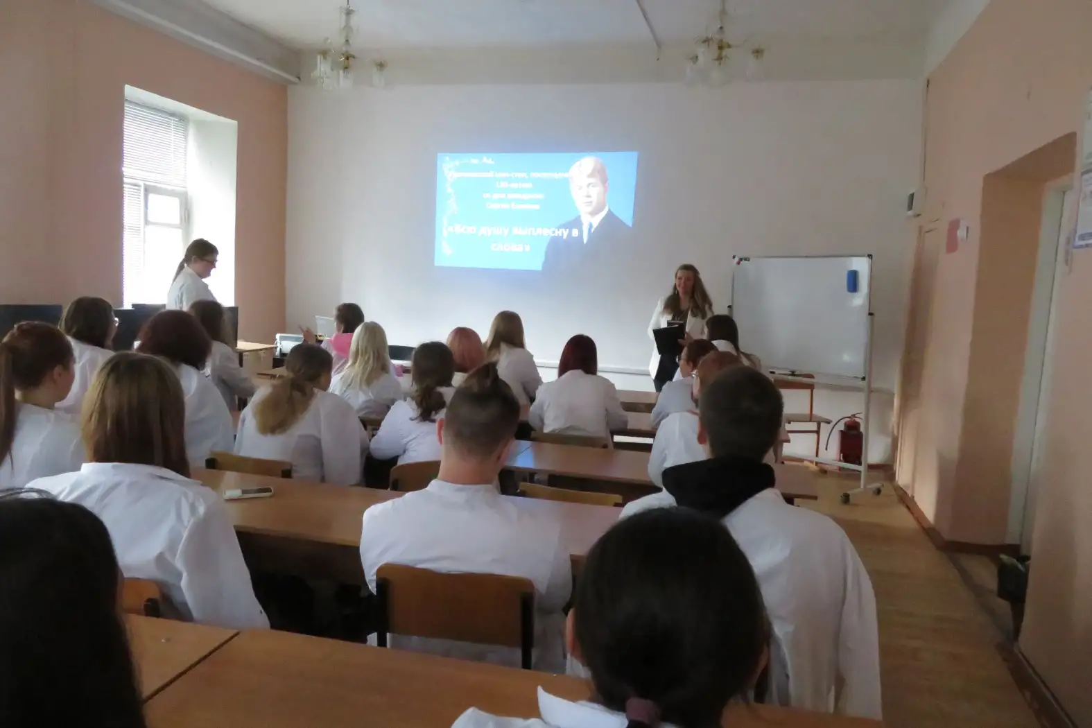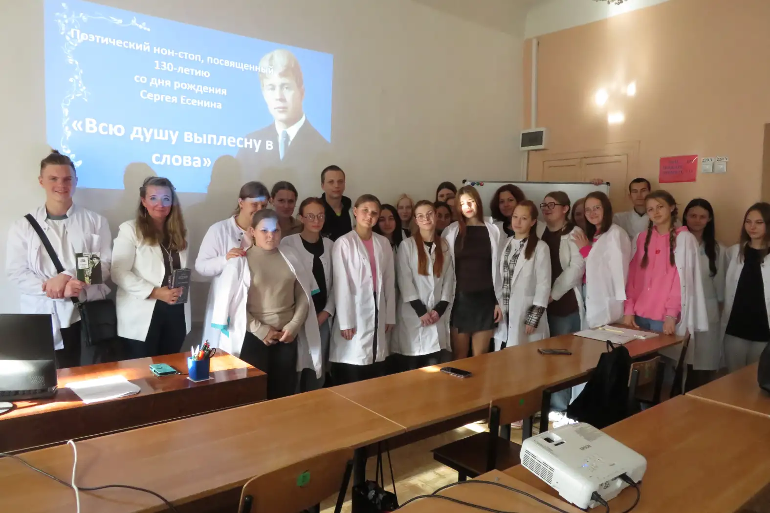 Для студентов 1 курса был проведён поэтический нон-стоп «Всю душу выплесну в слова», посвященный 130-летию со дня рождения С. А. Есенина. Участникам рассказали о биографии поэта, об интересных фактах из его жизни. Просмотр видеоматериалов, таких как «Я по белому снегу бреду», «Отговорила роща золотая» и «Я покинул родимый дом», позволил не только услышать, но и увидеть образы, созданные поэтом, почувствовать неповторимую искренность, которая присуща творчеству Есенина.