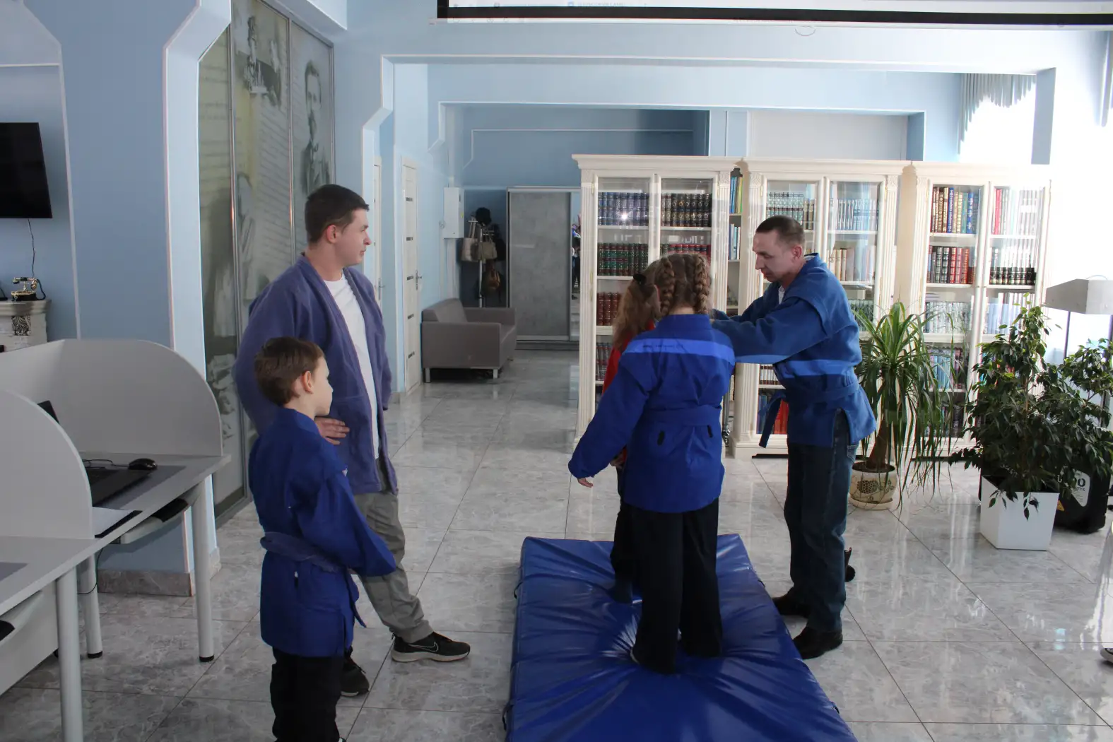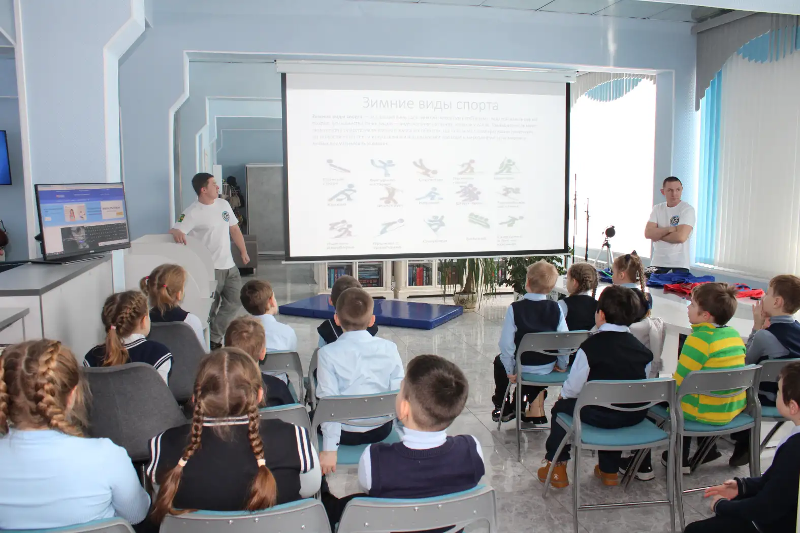 Ребята не только узнали много нового о самбо и других зимних дисциплинах, но и смогли почувствовать себя настоящими спортсменами. Им предложили попробовать выполнить несколько простых упражнений, примерить кимоно самбиста и, конечно же, задать тренерам все интересующие их вопросы.