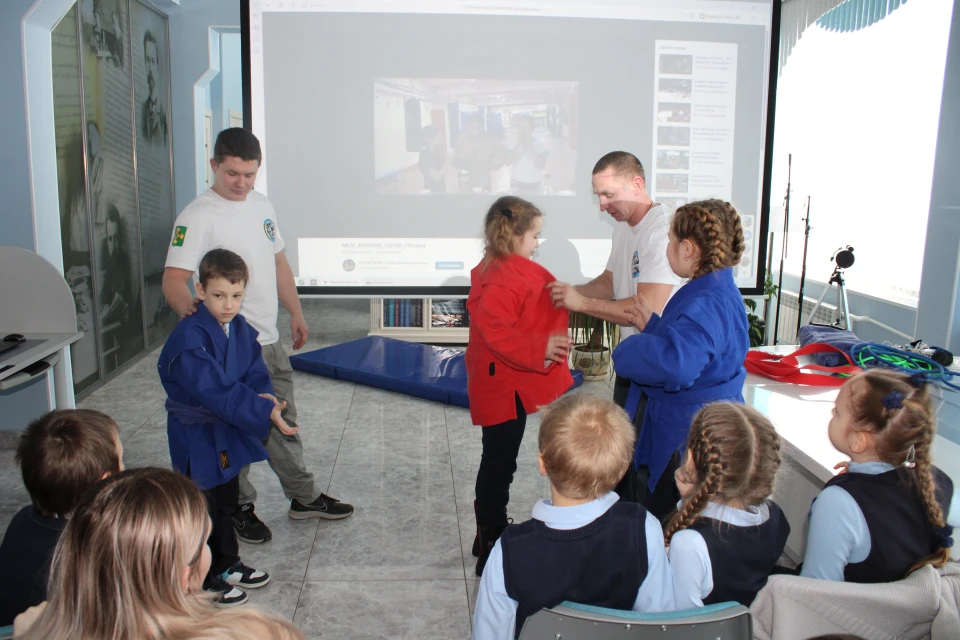 Встречу провели опытные тренеры спортивной школы олимпийского резерва №2, Сергей Николаевич и Сергей Сергеевич Рябинкины. Они поделились с первоклассниками и второклассниками секретами своего вида спорта, рассказали о том, как самбо воспитывает силу, скорость и характер.